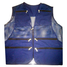 - Chất liệu: vải kaki + vải lưới. Kiểu dáng: áo gile, có 8 túi. Màu sắc: màu xanh dương.