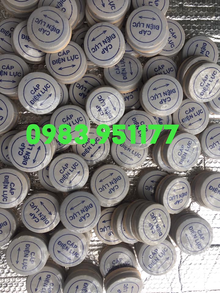 - – Xuất xứ: Việt Nam; – Chất liệu: Gốm sứ; – Kích thước: đường kính 8 cm, chiều dày 4 cm; – Thiết kế: chữ màu xanh in trên nền sứ màu trắng. - Ứng dụng: Dùng để cảnh báo vị trí có cáp điện lực ngầm.
